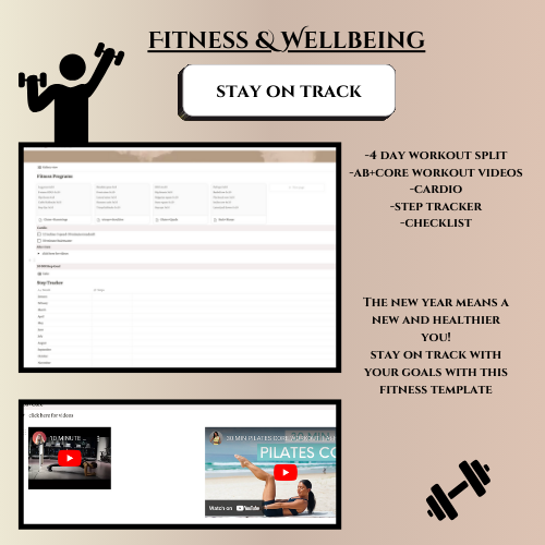 Stay organized for the 2025 year with this template. Take charge of your fitness and well-being with the core circuits and workout splits provided. Take advantage of the journalling prompts given and the weekly planners to know what's coming ahead!